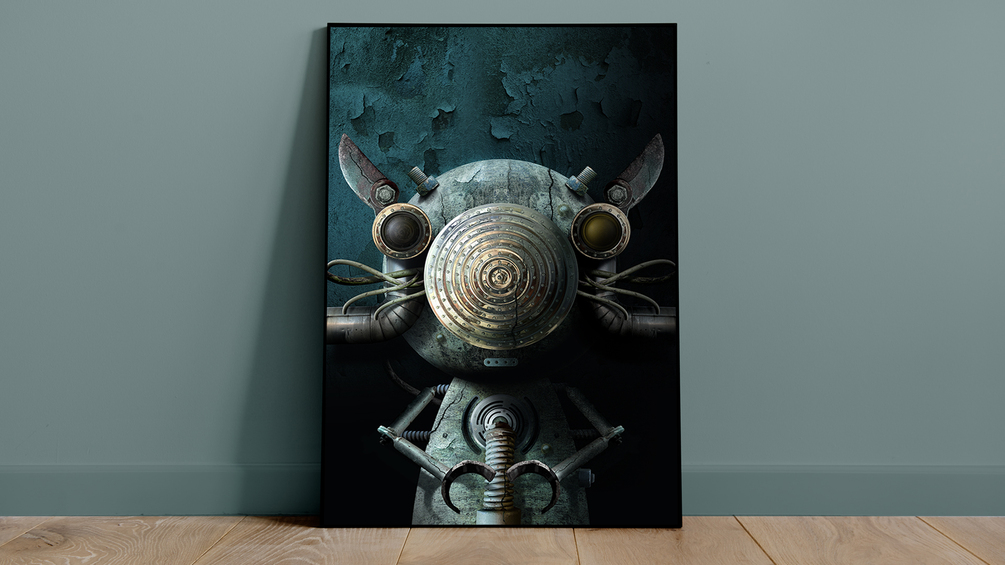 Dark, moody, and mechanical composite digital art illustration. Be bold and darken your space with this unique poster, perfect for any room in your home or office! Available as a large-size (24x36) printable wall art.