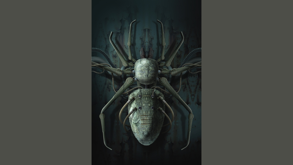 Dark, moody, and mechanical composite digital art illustration. Be bold and darken your space with this unique poster, perfect for any room in your home or office! Available as a large-size (24x36) printable wall art.